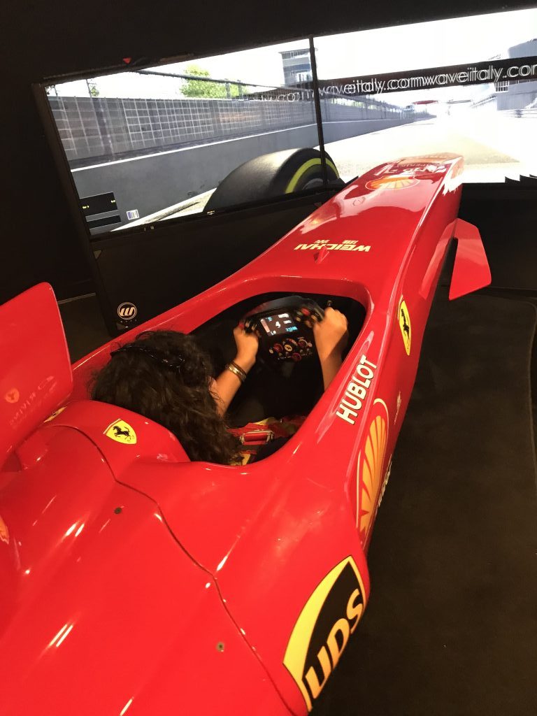 Concaving around the front of my stationary Ferrari F1 car were three giant screens and graphics of six race tracks. Being in Italy and of Italian descent, in the Ferrari Museum, strapped into a Ferrari F1 simulator meant there was only one option, Monza. A good choice I was told, as it’s one of the easiest tracks to negotiate.