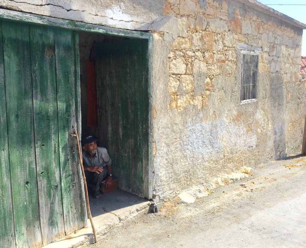 The houses in Kritou Tera, mostly made of limestone, were boarded up, closed, shut. Some were abandoned and crumbling in disrepair, others had signs of life with pot plants out the front. The streets were narrow and winded up and down the hill. Suddenly the road ended. It just stopped in front of trees and what looked liked someone’s property with a dirt track and a water-starved fig tree ahead. Zorba did extremely well to reverse our hire car out of there.