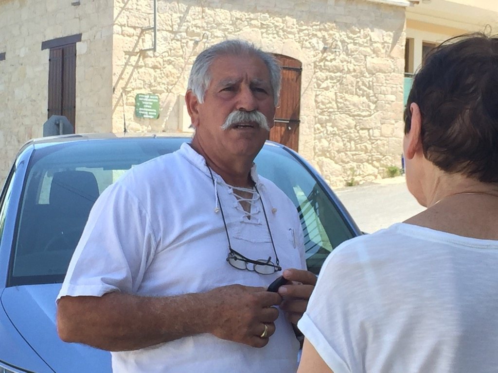 It was 36 degrees in the shade. Ten of us got out of two cars and immediately added 20 per cent to the population. A Sri Lankan carer of an elderly (and presumably wealthy) Cypriot came out and Zorba’s mother Katie asked her if she knew of her father. We wanted to see the house where he was born and grew up. No luck with the friendly Sri Lankan, but she advised us to walk up the hill to the Mayor’s office to ask there.
