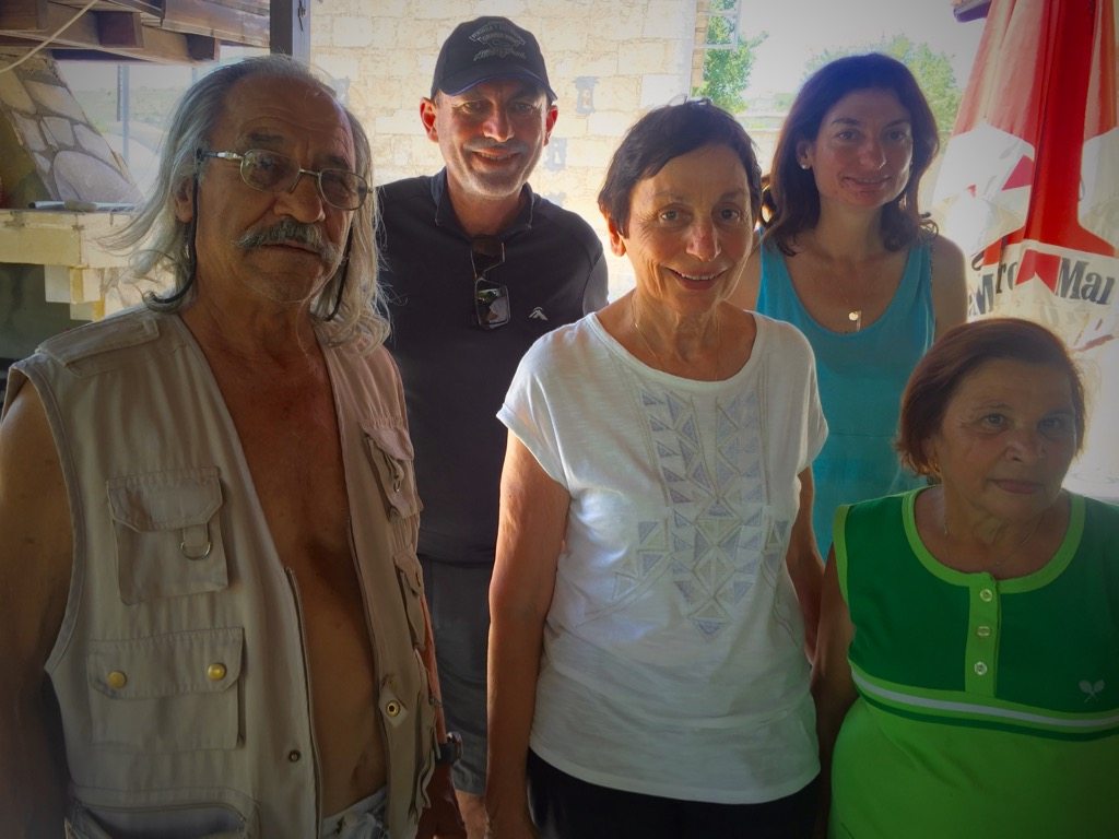 Within ten minutes, Georgios (pronounced ‘Yorg-gor) entered, looking utterly perplexed at the sudden party under his pergola. Katie stood to greet him and to explain in Greek what we were doing there. As it turns out, her father’s home is just behind Georgois home and he is her cousin! Katie had heard of him, but when she visited Kritou Tera in the 1980s, Georgios wasn’t there, he was in jail for shooting rabbits. Really, he was sent to jail for shooting rabbits? It was a hard story for me to swallow, but the joy of finding a relative and Zorba’s grandfather’s home filled us all with such happiness. Even the boys, Leo, John and Matt (all 11 years old) were happy and patient, politely sitting still while their Yia Yia had time catching up with her long lost cousin.