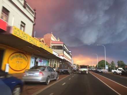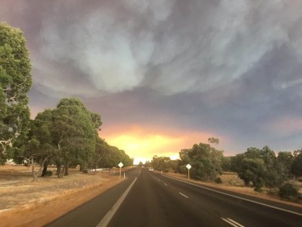 As we approach Collie it gets real. The sky changes colour and the customary country stillness that greets us while travelling down south is replaced by an eerie silence. The kids wake from their snooze to witness the colourful yet threatening landscape which fills us all with apprehension.