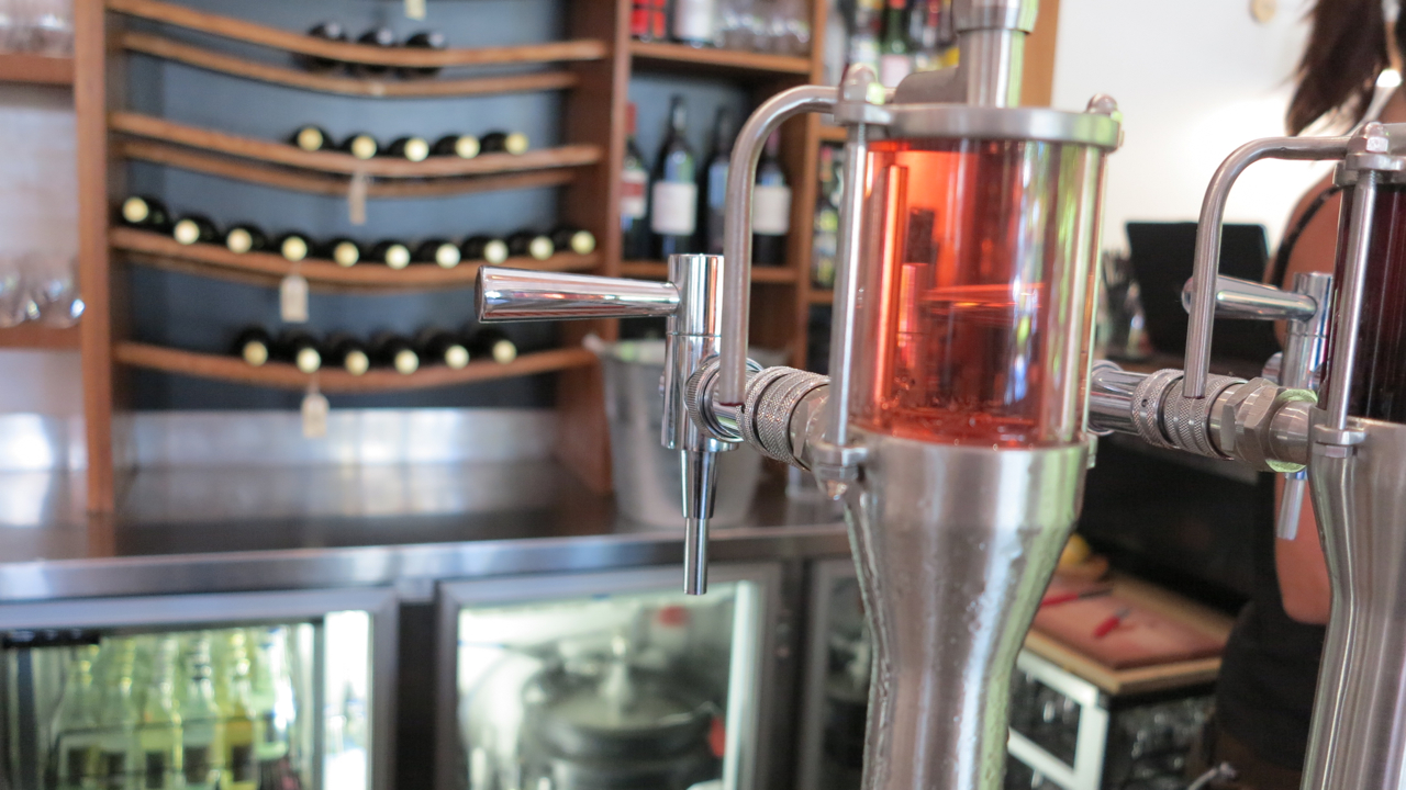 The wine is pushed through the tap with nitrogen, much the same as beer is with carbon dioxide. I asked Swings Taphouse & Kitchen manager, bubbly Annie Murphy, if the nitrogen compromises the taste of the wine.