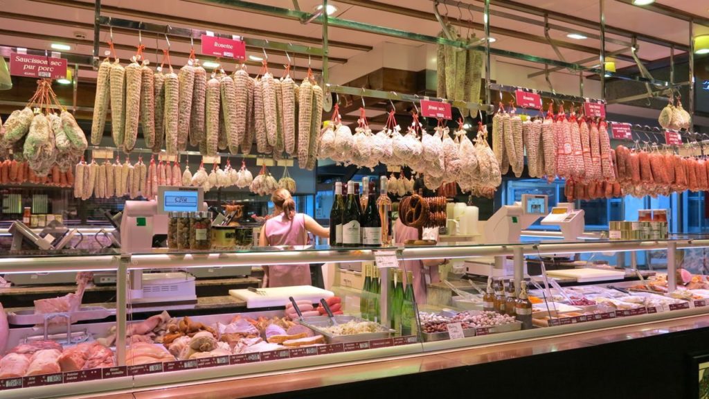 The Halles Gourmet Food Market is a feast for the eyes, as well as for your stomach. Uncover in a mall, you’ll fine a hundred different types of cheeses, patisseries displaying sweet temptations, neat rows of colourful macarons, salamis of different sizes hanging above deli counters, butchers offering cuts of meat from every part of the animal, oysters locked tight in their shells packed into ice baskets, waiting to be prised open, terrines, pates, parfaits, quiches, pies, olives, and stacked fruit and vegetables stalls.