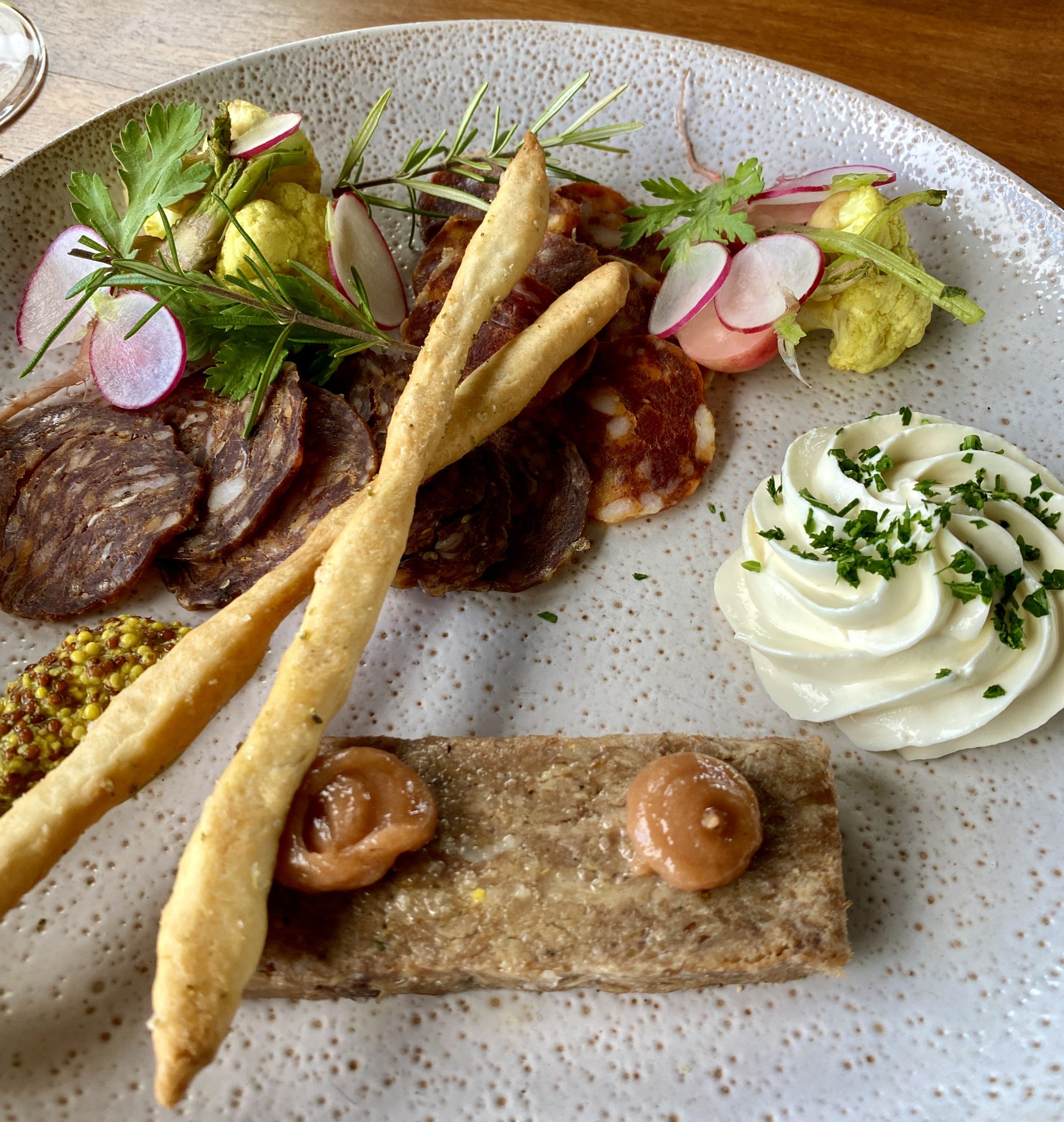 This iteration is much better. The restaurant opened as Frui Momento in January 2022 when it was bought by its neighbour, Cherubino Wines. Locally referred as the “chick on a stick” winery, the restaurant is in a stunning building with a slick fit out. Picturesque with a lake, and the said-famous gold statue of a woman protruding out, arms outstretched. The surrounding gardens are gorgeous – the sort where you wish your wedding photos were taken. It is a really lovely place to spend an afternoon. The restaurant is quite formal. Outside on the patio it seemed more relaxed. Bookings essential.