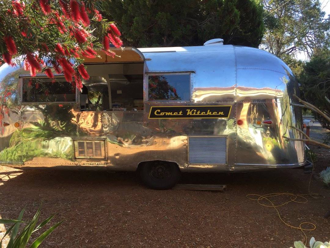 Comet kitchen is a food van passionate about providing the best gourmet burgers in the Dunsborough and Yallingup region. Burgers, chips and coffee from a 1961 silver Airstream van.