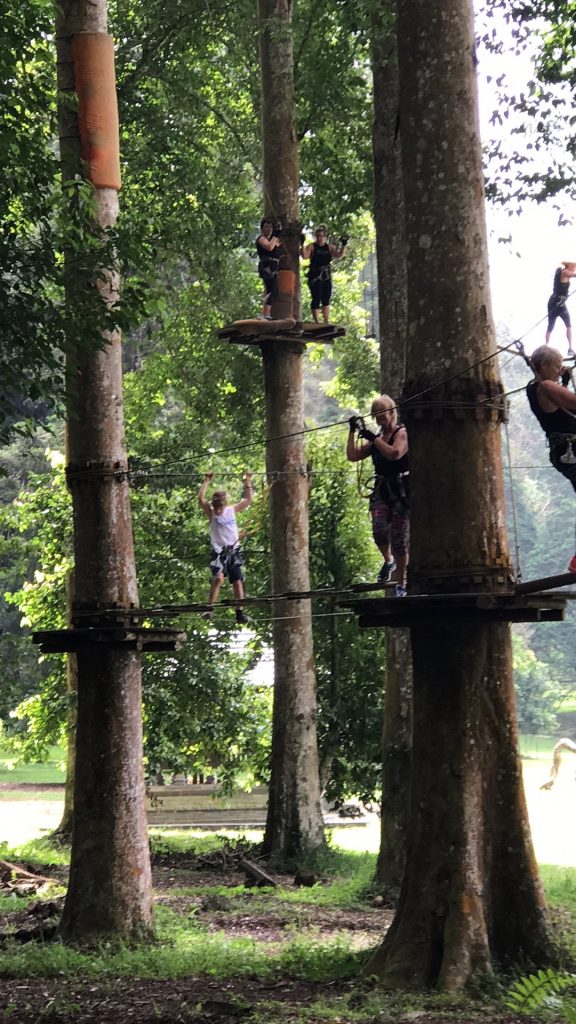 We climbed a mountain (well, most of us did), Mount Batur which is one of Bali’s volcanoes, went for a long stand up paddle in a calm bay in Sanur, did a challenging high ropes course with flying foxes, tight ropes, swaying bridge walks and rope wall climbs at the Tree Top Adventure Park, and my favourite, we visited the Balinese Farm Cooking School set on acres of lush beautiful vegetable gardens with a well-set-up cooking school, situated near Ubud.