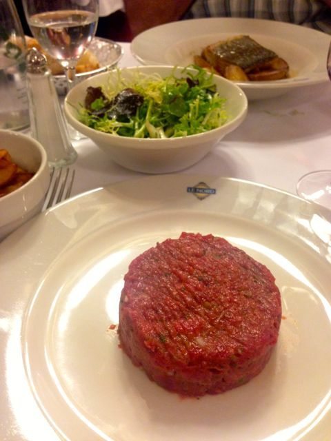 Main course was a tough decision for me. I chose steak tartar, classic with egg yolk. Zorba chose cod. My tartar was studded with tiny capers and herbs. It was soft, delicate and the meat just melted on my tongue. Again, I found this dish very rich, so Zorba finished it off for me.   Zorba’s cod was flaky, cooked perfectly, and served with potatoes and bacon. His dishes tonight were the picks of our meal.