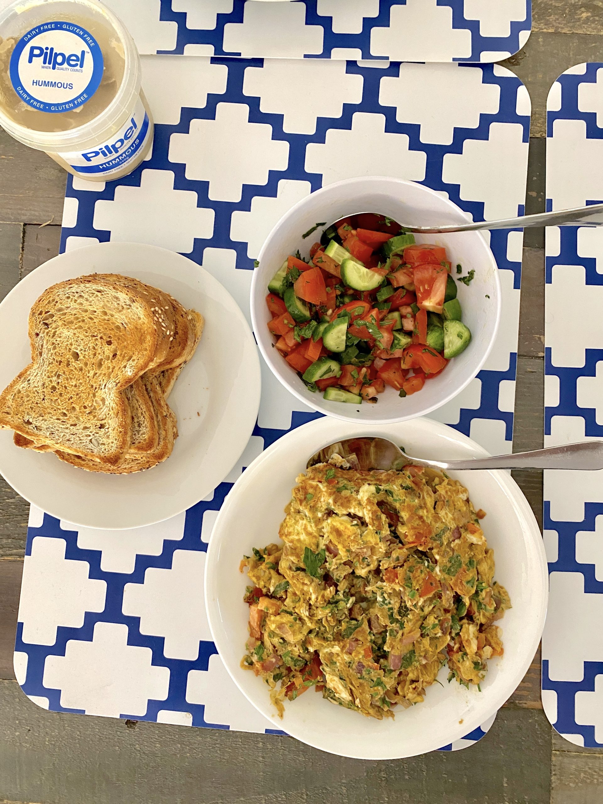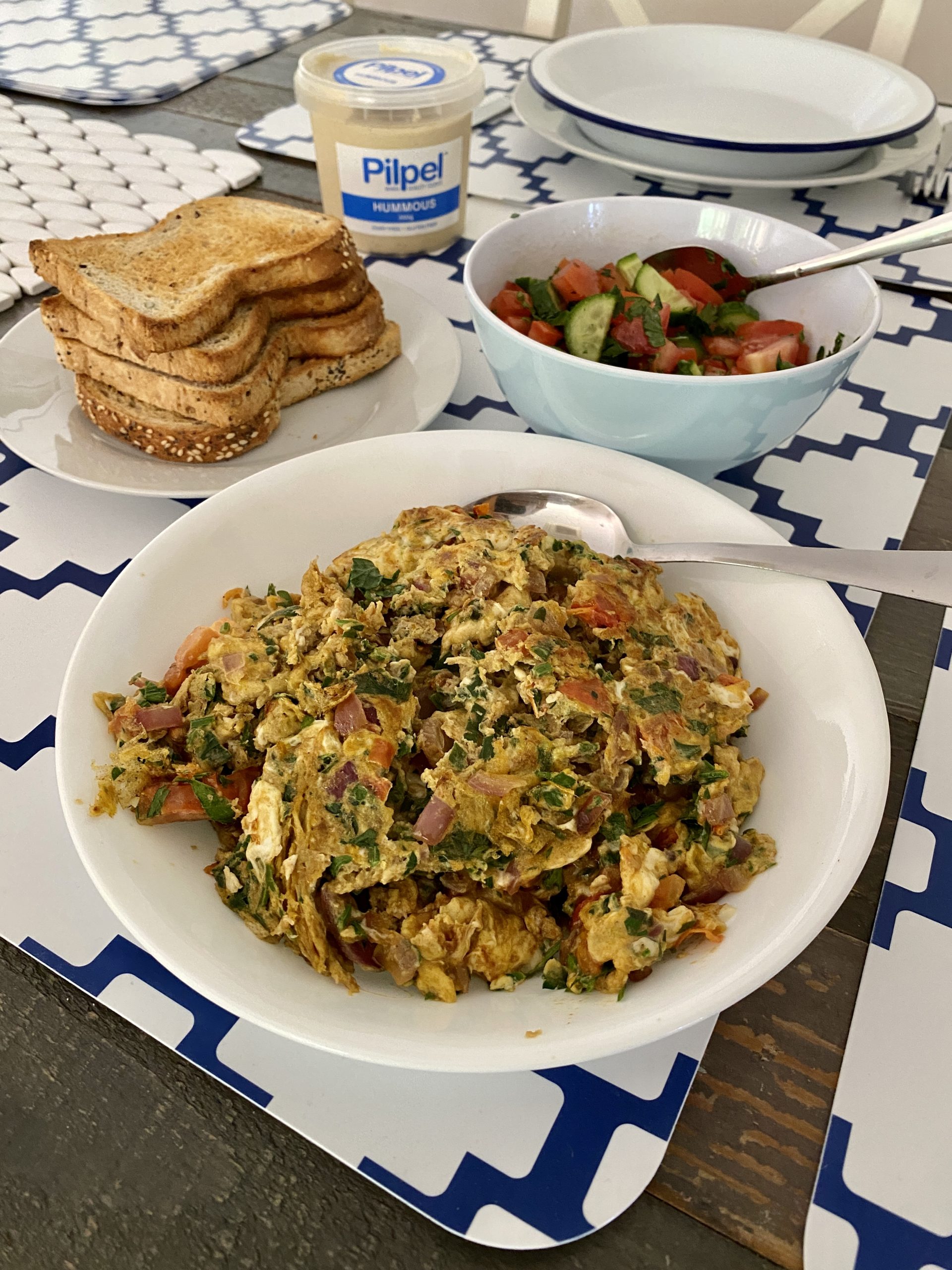 Now, back to Formula 1 food. Monique posted a pic of her Bahrain F1 themed breakfast and said it was delicious. I googled and read a few different recipes for Bahraini Scrambled Eggs, and in the end, I made up my own.