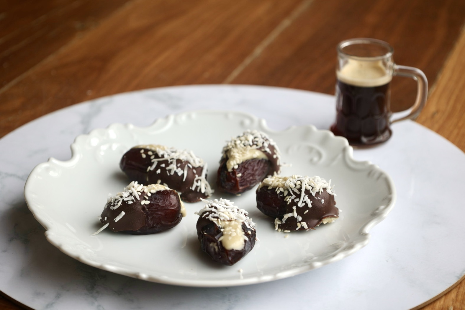 Here’s a recipe for Tahini stuffed chocolate dates – a salty, sweet and nutty snack, very moorish and healthy(ish) – a great accompaniment to coffee while watching the Saudi Arabian Formula 1 Grand Prix. Dates are revered in Saudi Arabia where they boast having the best dates in the world. Try this little taste of Middle East, something you can prepare ahead of time and snack on while watching the race (which I will be doing on Monday morning).