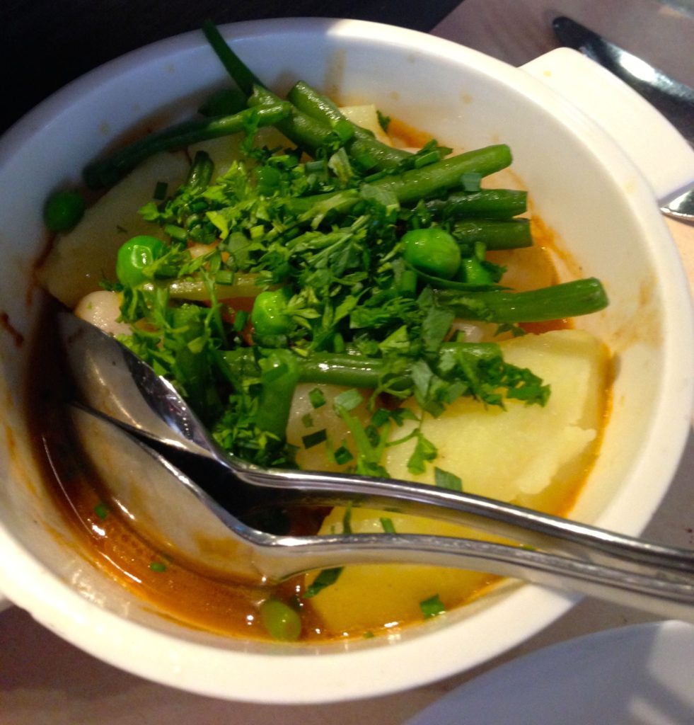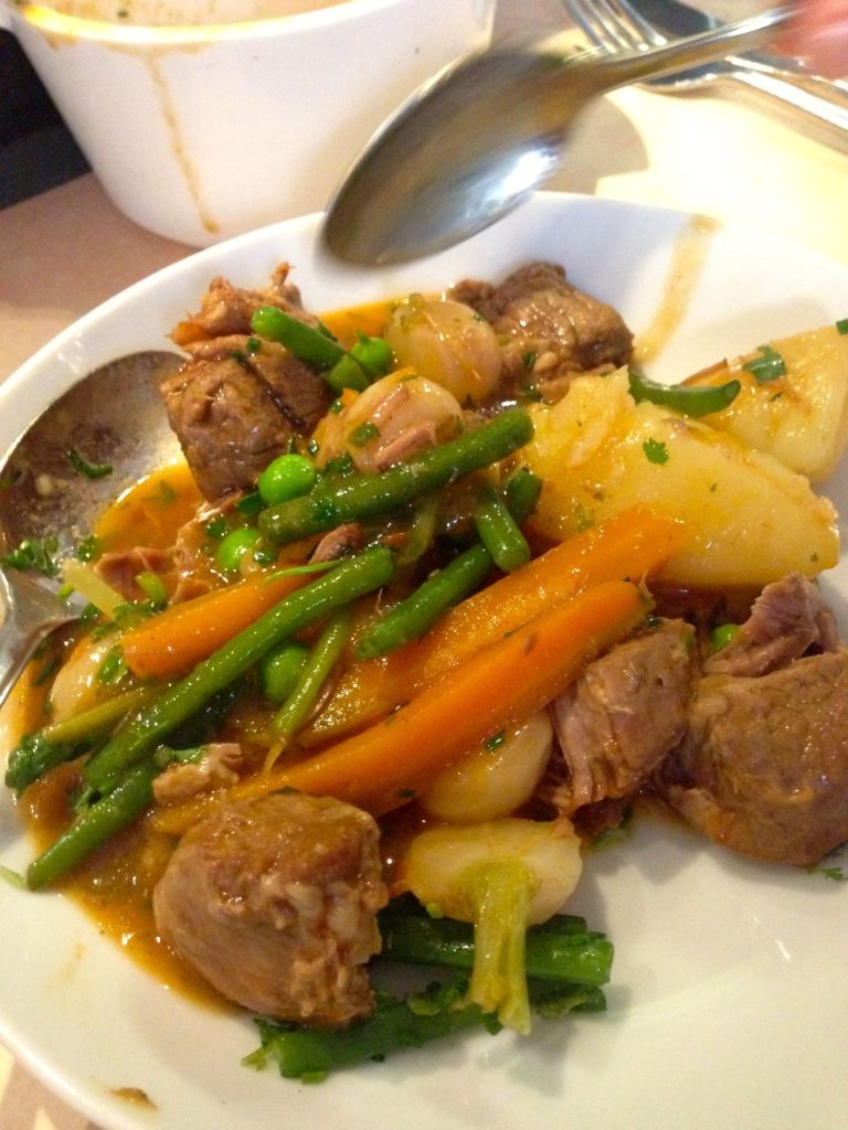 Zorba, who’s been craving stew (beef bourguignon in particular) ordered the lamb stew, and we absolutely delighted he did. I was lucky to get a taste. It was hearty and full of vegetables. It came served in a little casserole pot for Zorba to serve himself. I thought it was lovely, he thought it was unnecessary.